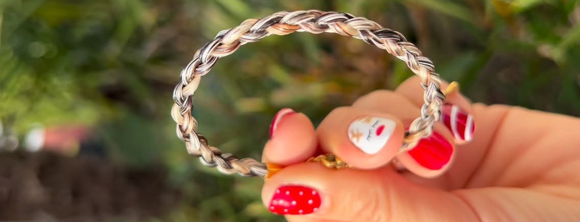 Un jour, m'est venu l'idée de créer des bracelets pour conserver ce souvenir intacte...à partir de crin de son propre cheval, un objet réel unique que l'on porte sur soi, un bijou chargé d'histoire.